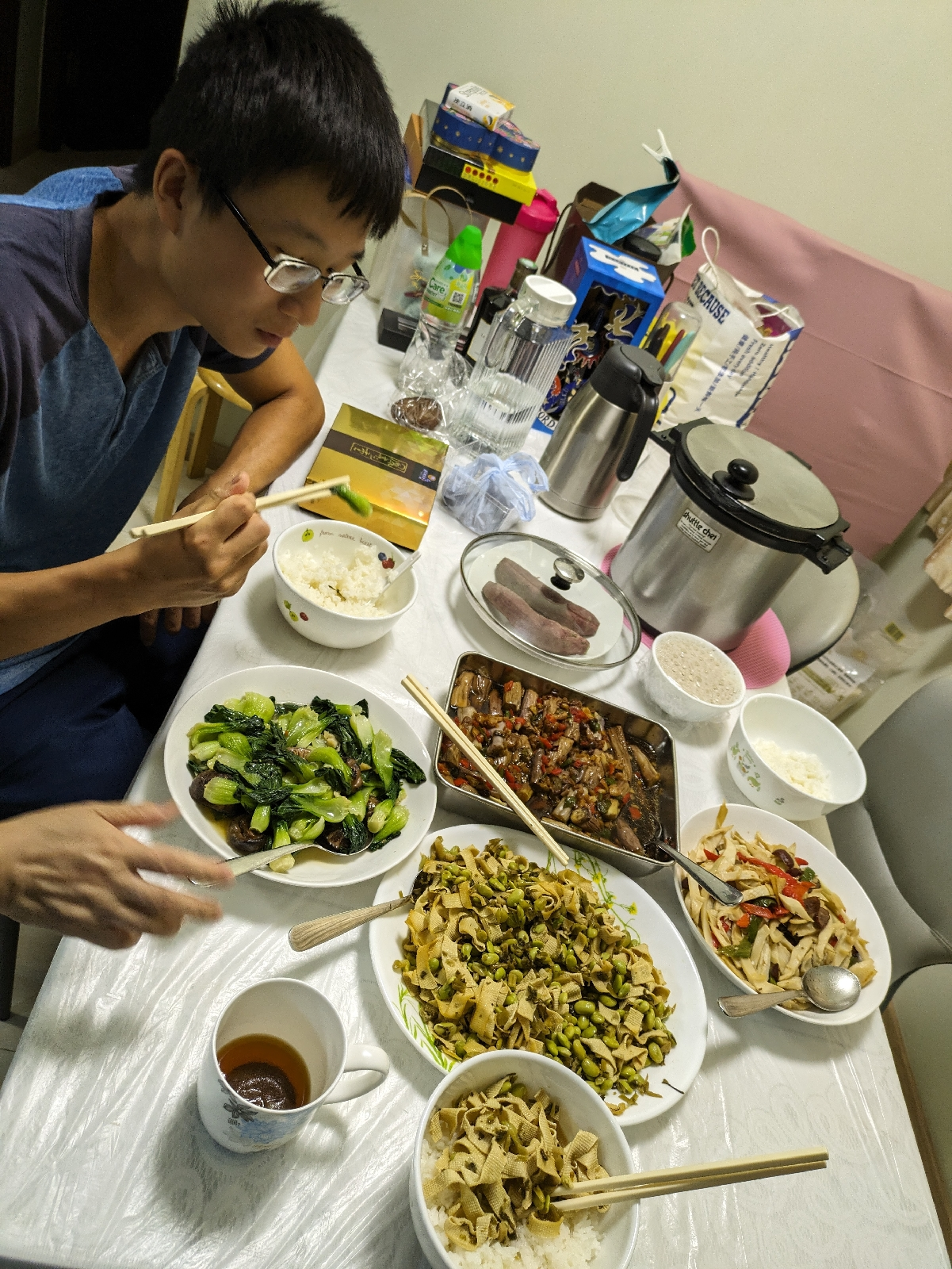 We shared evening meals together, which were delicious and mostly vegan. Cantonese food more closely resembles the Chinese food you get in restaurants in the US. In fact, I realize that when you hear a typical “Chinese accent” or impression of a Chinese person, it is much closer to the sounds of Cantonese than Mandarin. I suppose this is because it was originally Cantonese immigrants (people from Hong Kong and the adjacent region in China, Canton/Guangdong) who moved to the US to dig for gold, lay railroads and start restaurants and all that.